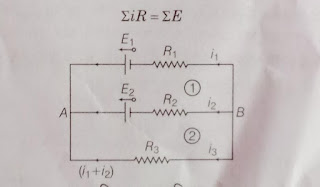 2- किर्चोफ्फ़ का द्वितीय नियम अर्थात लूप का नियम :- इस नियम के अनुसार किसी परिपथ के प्रयेक बंद भाग के विभिन्न खंडो में बहने वाली धारा तथा संगत धारा के प्रतिरोध के गुणनफलो का बीज गणितीय योग उस भाग में लगने वाले विद्युत वाहक बलो के बीज गणितीय योग के बराबर होता है अर्थता