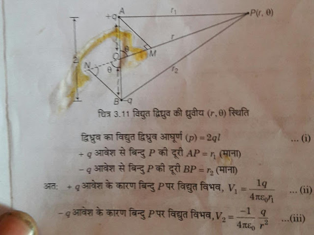 #:- विद्युत द्विधुर्व के कारन विद्युत विभव :- इसके कारन निम्नलिखित स्थिति यो में विभव ज्ञात किया जा सकता है –