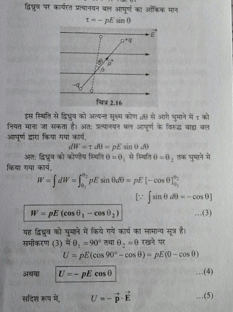 #:- एक समान विद्युत क्षेत्र में विद्युत द्विधुर्व को घुमाने में किया गया कार्य :-