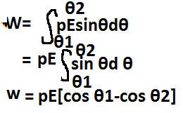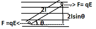 #20:-एक समान वद्युत क्षेत्र में द्विधुर्व पर बल युग्म आघूर्ण :– मन एक द्विधुर्व को एक् समान वद्युत क्षेत्र में θ कोण बनाते हुए रखा गया है तब इस पर चित्र अनुशार बल कार्य करते है जिसके कारण इस पर बल युग्म लगता है
