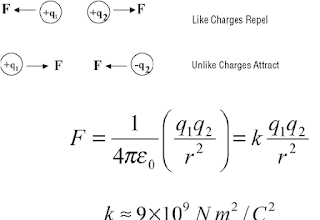 1):- आकर्षण एवं प्रतिकर्षण:- सजातीय आवेश एक दूसरे को प्रतिकर्षित करते हैं। जबकि विजाती आवेश एक दूसरे को आकर्षित करते हैं