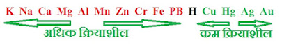 #6:- सक्रियता श्रेणी :- धातुओ की क्रियाशीलता को अवरोही क्रम में रखने पर बनी श्रेणी सक्रियता श्रेणी कहलाती है कुछ विशेष तत्वों की श्रेणी निम्न है –